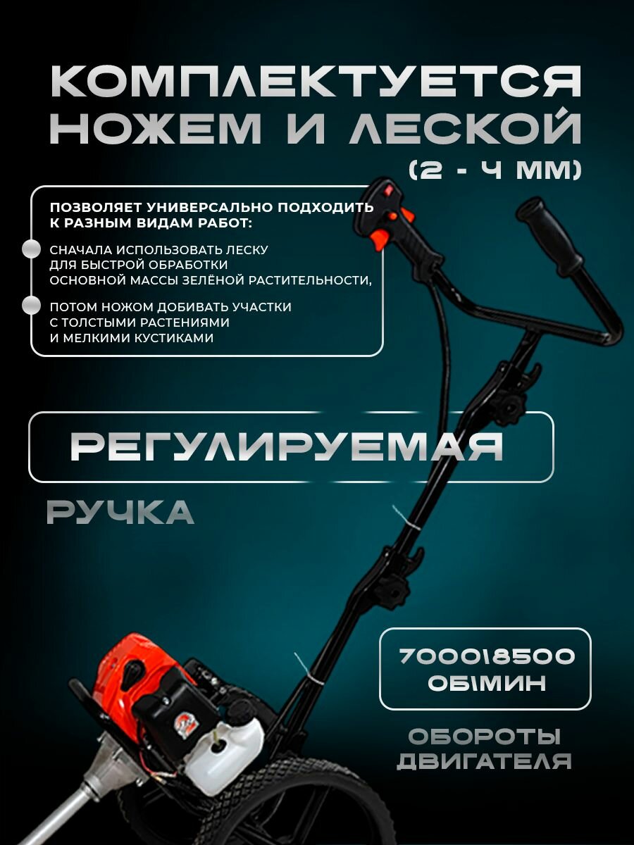 | Комплектация | Триммер на колесах Фреза Катушка Кожух защитный Инструкция по эксплуатации Гарантийный талон Упаковка |