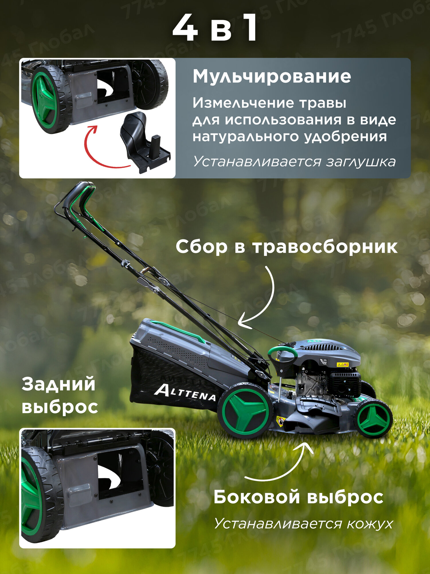 Газонокосилка бензиновая самоходная ALTTENA LM 4600 травосборник 60л, задний и боковой выброс, мульчирование: сравнение цен, характеристики, фото, актуальное наличие и цены.