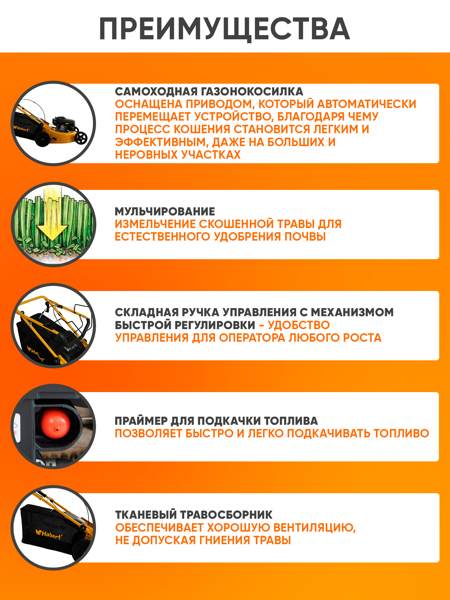 Газонокосилка бензиновая самоходная Habert HBL17S (150cc), 3.8лс, 150куб. см, ширина захвата 43см, травосборник 50л.: сравнение цен, характеристики, фото, актуальное наличие и цены.