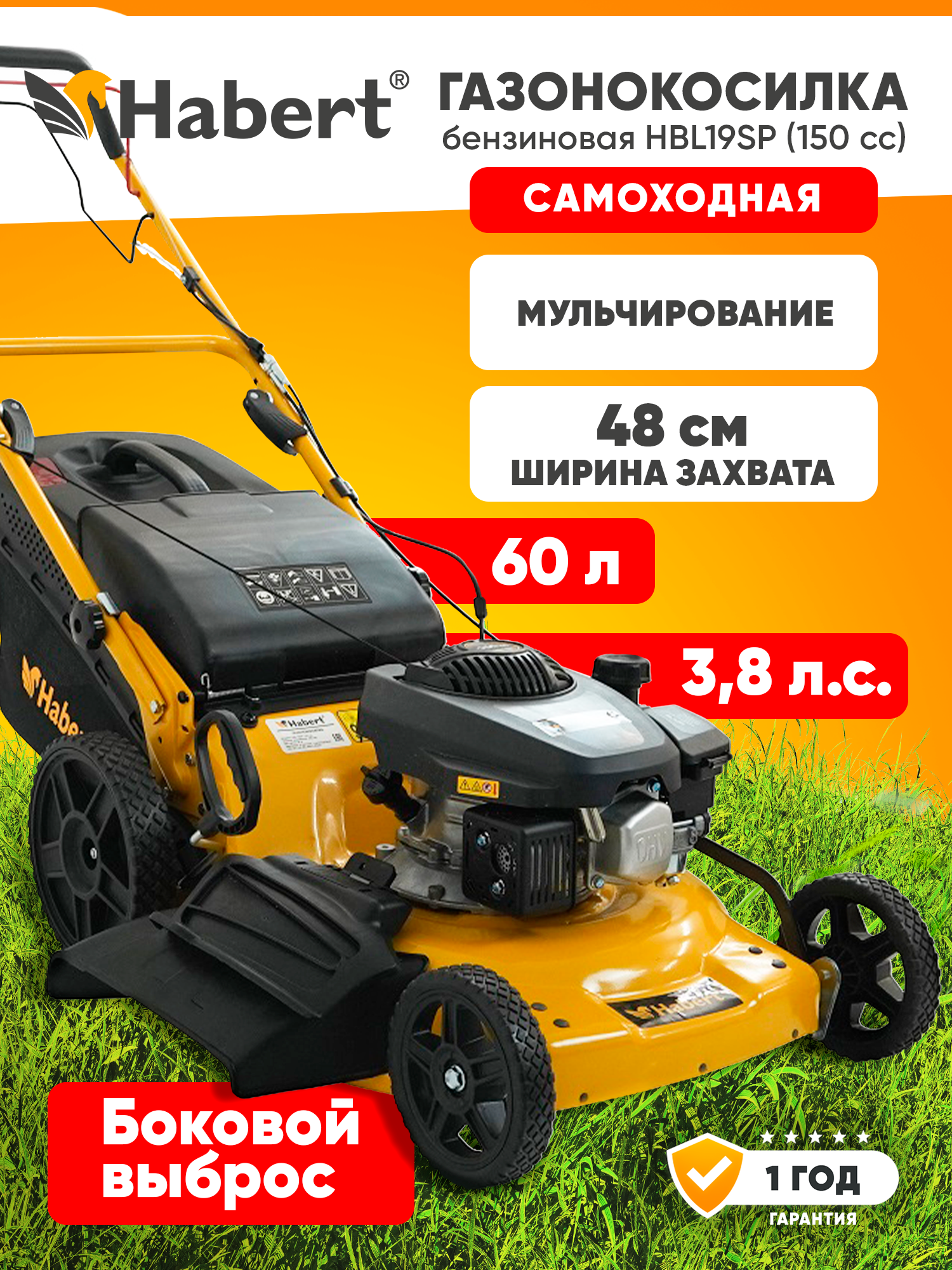 Купить Газонокосилка бензиновая самоходная Habert HBL19SP (150 cc), 3.8лс, 150куб. см, ширина захвата 48см, травосборник 60л. с доставкой по всей России. Газонокосилка бензиновая самоходная Habert HBL19SP (150 cc), 3.8лс, 150куб. см, ширина захвата 48см, травосборник 60л.: сравнение цен, характеристики, фото, актуальное наличие и цены.