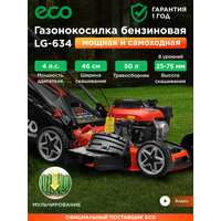 Газонокосилка бензиновая самоходная ECO LG-634 (EC3420-1) - это надежное и мощное средство для ухода за газоном. Она оснащена бензиновым двигателем ECO MX150 мощностью 4 л. с, что обеспечивает высокую производительность и эффективность работы. Косилка имеет стальную деку, которая обладает прочностью и долговечностью. Благодаря централизованной установке высоты с 8 уровнями регулировки, вы можете легко настроить оптимальную высоту кошения для вашего газона. Ширина кошения составляет 46 см, что позволяет быстро и равномерно обрабатывать большие площади. Кроме того, газонокосилка оснащена функцией мульчирования, которая позволяет измельчать траву и использовать ее в качестве натурального удобрения для вашего газона (в комплекте имеется специальный нож и заглушка).