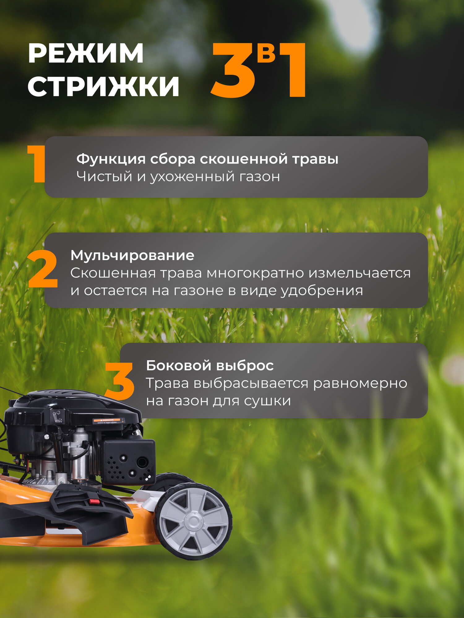 | Дополнительные функции | регулировка высоты скашивания, функция мульчирования, электростартер |