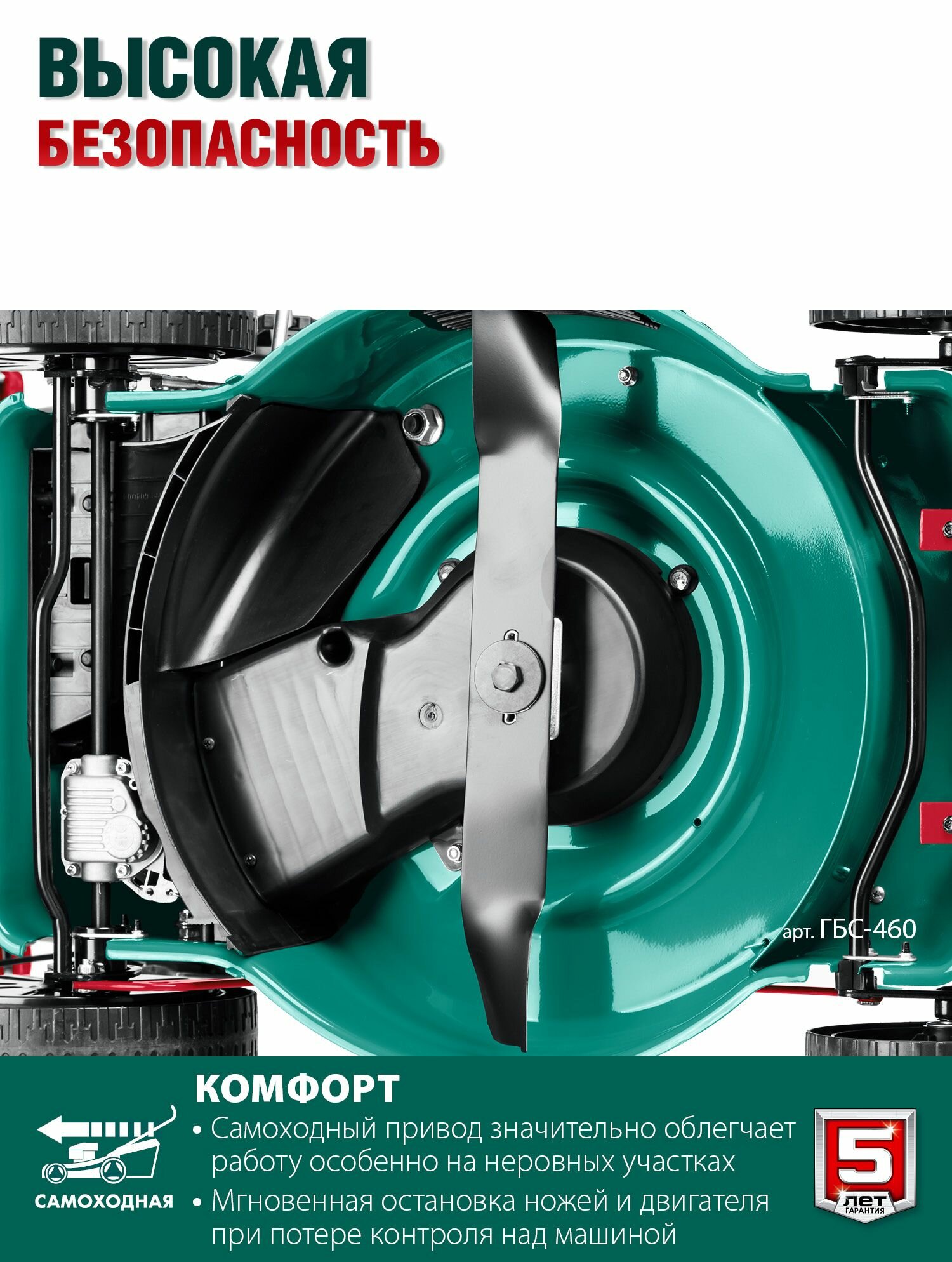 | Конструктивные особенности | регулировка ручки по высоте, складная ручка, Автоматическое отключение по достижению заданного давления, Автоматическое отключение при недостаточном уровне масла, Безопасная остановка, Блокировка от случайного включения, Боковой выброс травы, Защита от перегрузок, Индикатор уровня топлива, Колеса, Мульчирование собранной травы, Реверс |