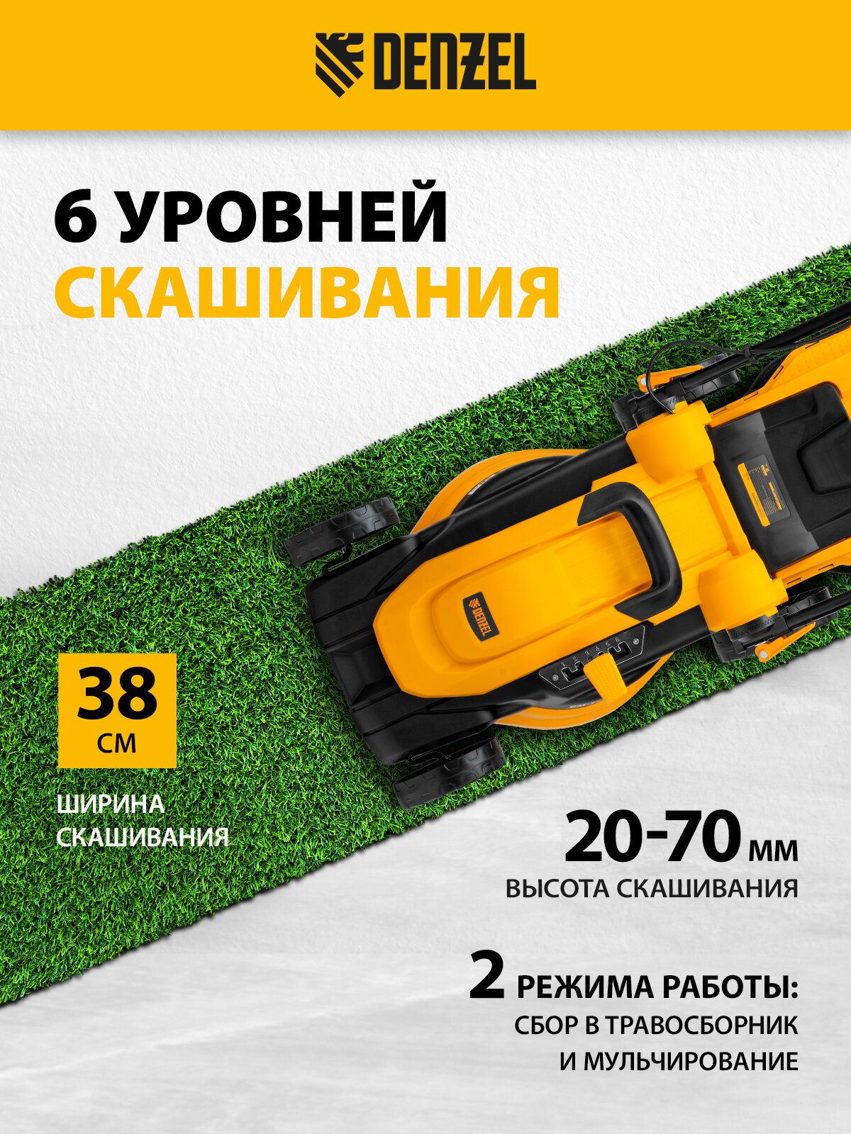 - Гарантия 3 года — качество газонокосилки Denzel подтверждено производителем.
