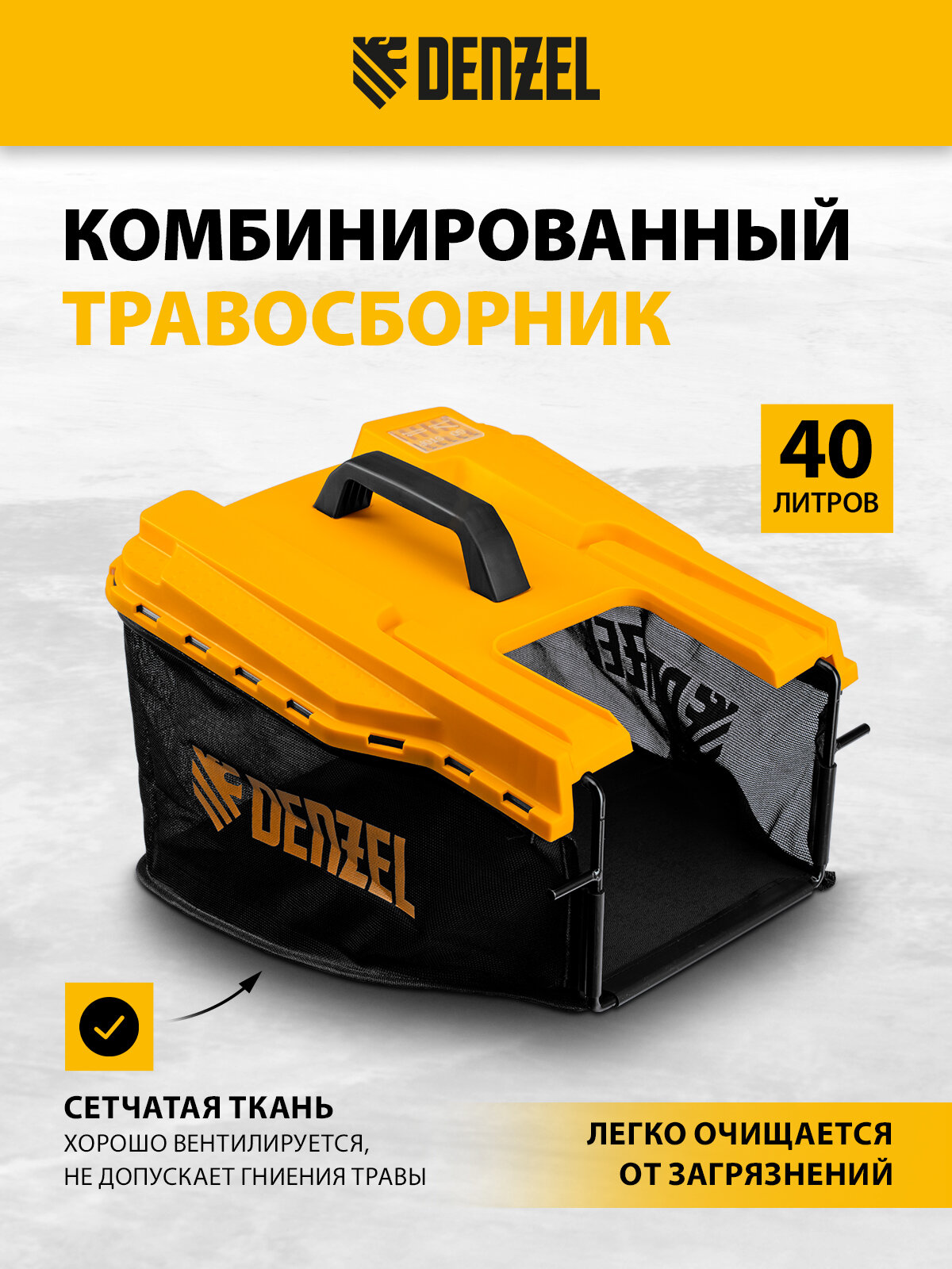 - Удобная эксплуатация — комбинированный травосборник с ручкой легко снимать и чистить.