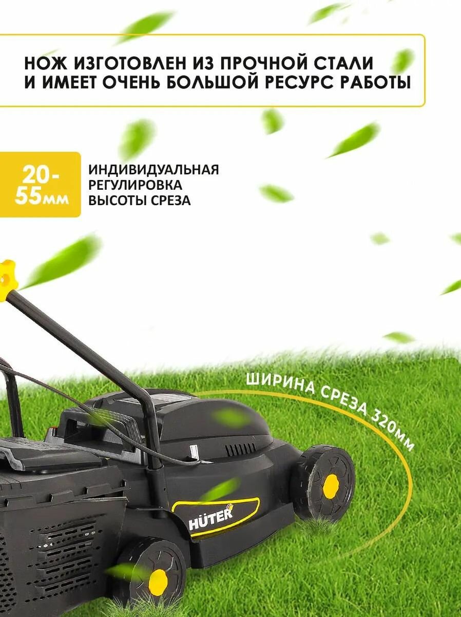 Газонокосилка электрическая Huter ELM-320/1000, 32см, несамоходная [900/70/4/19]: сравнение цен, характеристики, фото, актуальное наличие и цены.