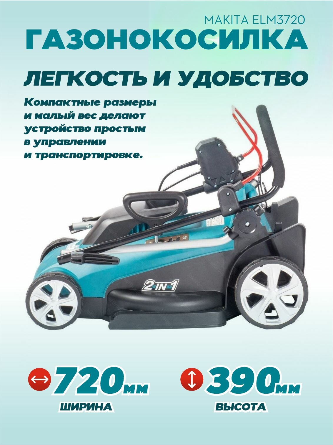 Купить Газонокосилка электрическая MAKITA ELM3720, ширина скашивания 32 см, травосборник 40л,1,4 кВт с доставкой по всей России. Газонокосилка электрическая MAKITA ELM3720, ширина скашивания 32 см, травосборник 40л,1,4 кВт: сравнение цен, характеристики, фото, актуальное наличие и цены.