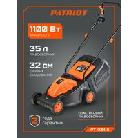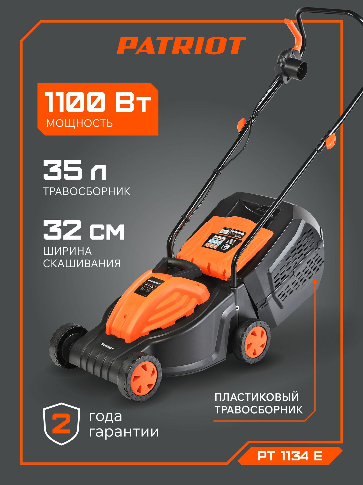 Газонокосилка электрическая PATRIOT PT 1134E, бесщеточный двигатель 1100Вт, ширина скашивания 32см: сравнение цен, характеристики, фото, актуальное наличие и цены.