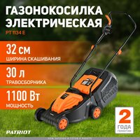 Купить Газонокосилка электрическая PATRIOT PT 1134E, бесщеточный двигатель 1100Вт, ширина скашивания 32см с доставкой по всей России.