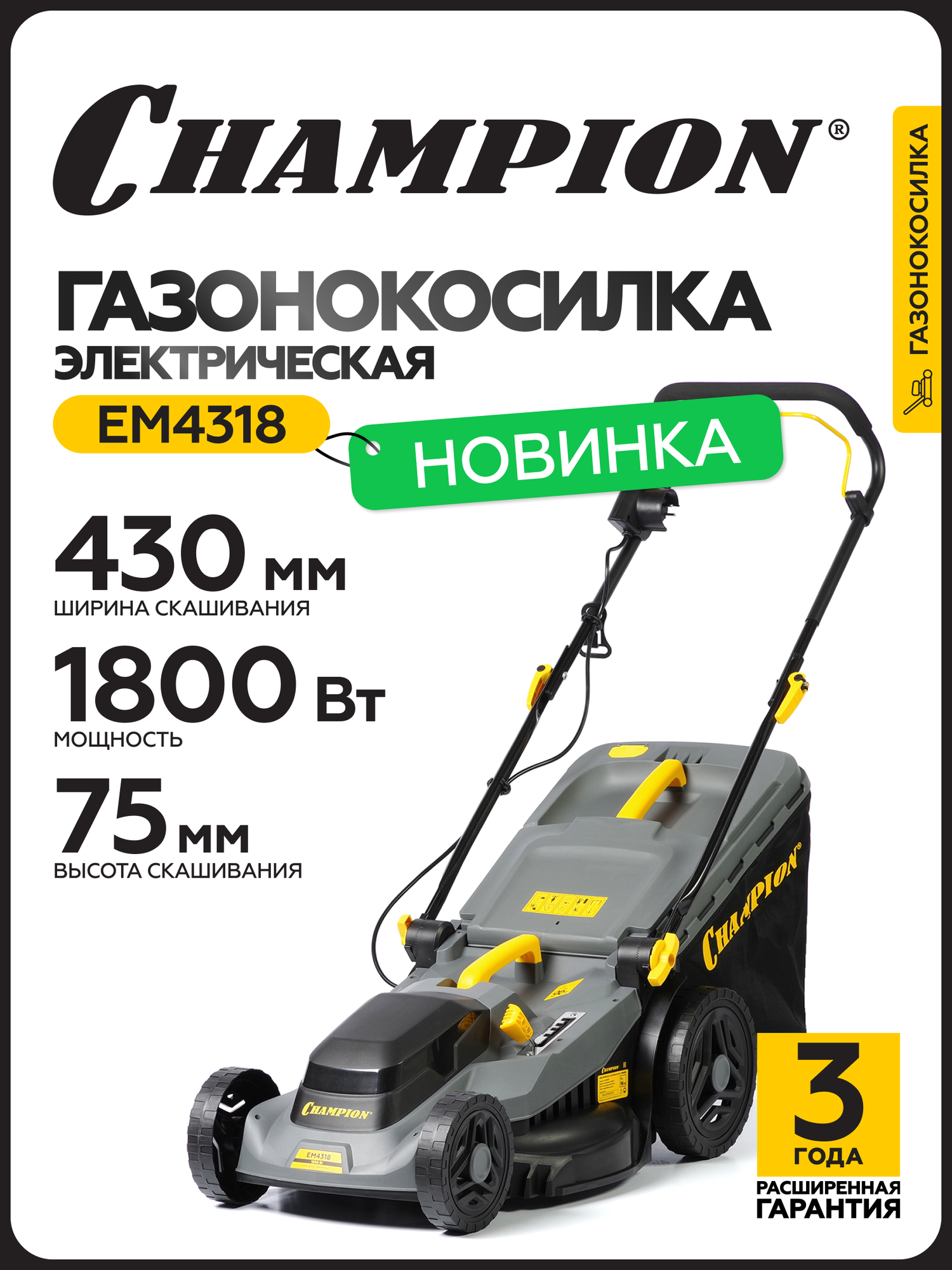 Купить Газонокосилка электрическая с мульчированием и травосборником CHAMPION EM4318 с доставкой по всей России.