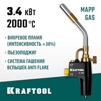 Газовая горелка KRAFTOOL 55510, предназначена для работы с легкоплавкими металлами и сплавами (свинец, олово, цинк, медь, алюминий, золото, серебро и пр.), для их пайки и сварки. Используется для плавки и сварки изделий из стекла и пластмасс, включая пластиковые трубы, синтетические шнуры и тросы. Для разогрева различных предметов, например, для облегчения отворачивания резьбовых соединений; для размораживания замков. Энергоносителем для горелки служат пропан, мапп-газ в специальном баллоне с резьбовым US 1" соединением. Приблизительное время эксплуатации газового баллона 90 мин.