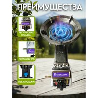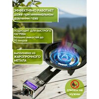 Газовая горелка чугунная - надежный и эффективный прибор для приготовления пищи на природе или в полевых условиях на открытом огне. Двухконтурная горелка с регулировкой пламени из жаропрочного чугуна - это стойкий и долговечный материал, который выдерживает высокие температуры, не растрескивается и не плавится. Горелка туристическая покрыта антикоррозионным покрытием, обеспечивающим привлекательный внешний вид. Походная горелка газовая с пьезоподжигом легка в обслуживании, отлично отмывается обычными моющими средствами. Благодаря этому, горелка туристическая может использоваться в любую погоду и при любых условиях. Варианты установки: настольная или в печь под чугунный казан, кастрюлю, стальной вок, бак с водой до 70 литров. Конструкция горелки обеспечивает полное сгорание горючей смеси, высокий КПД и низкое содержание вредных продуктов сгорания. Эффективно работает даже при минимальном давлении газа. Мощная горелка газовая подходит для быстрого нагрева больших ёмкостей: казан, автоклав, коптильня, садж, котел и др. Портативная плита туристическая имеет пьезоподжиг, благодаря которому можно удобно разжигать пламя. Два контура на плитке регулируются помощью переключателя. Мощность 10кВт, диаметр рабочей поверхности 31см, рабочее давление: 30-40 mBar. Тип топлива: бытовой газ. Максимальный расход газа: 0,71 кг/ч. Большая рабочая площадка позволяет размещать кастрюли и сковороды и другую кухонную посуду, что делает процесс приготовления блюд многогранным, от простой жареной картошки до сложных мясных рагу. Газовая горелка из чугуна для казана и саджа - это испытанное, универсальное и удобное устройство, которое станет незаменимым помощником в готовке на открытом огне. Благодаря высокой теплоотдаче, мощному и долговечному чугунному корпусу, а также удобству использования, она позволяет добиться потрясающего результата в совершенствовании кулинарных навыков. Идеальная горелка для дачи, загородного дома, отдыха на даче или на природе.