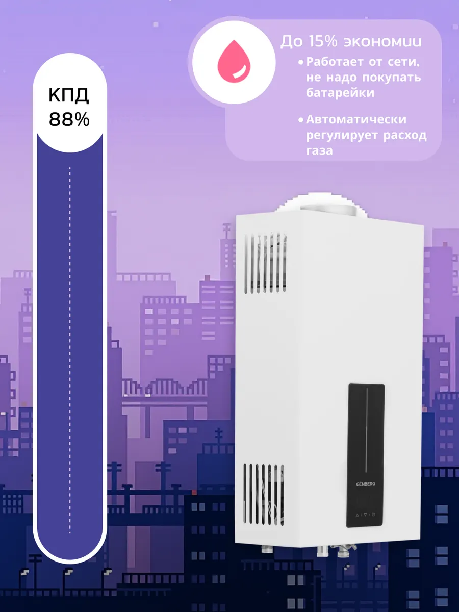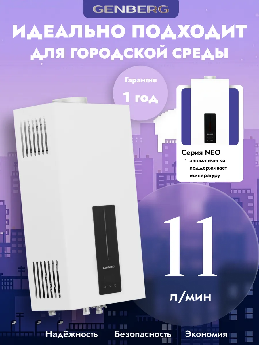 Газовая колонка Genberg 611.01 NEO / Проточный газовый водонагреватель, 11 литров, 21кВт: сравнение цен, характеристики, фото, актуальное наличие и цены.