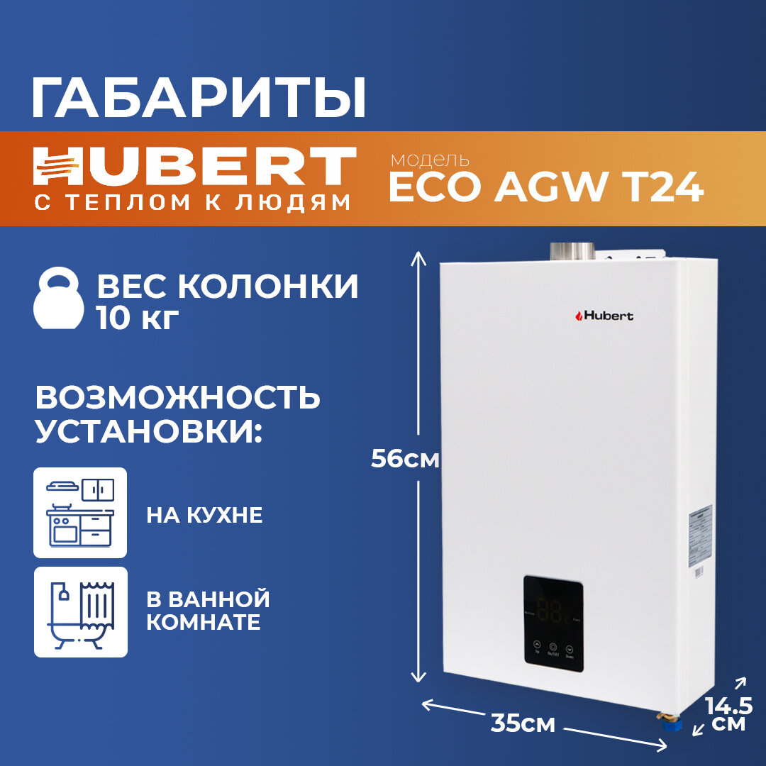 Купить Газовая колонка Hubert ECO AGW T24 с доставкой по всей России. Газовая колонка Hubert ECO AGW T24: сравнение цен, характеристики, фото, актуальное наличие и цены.