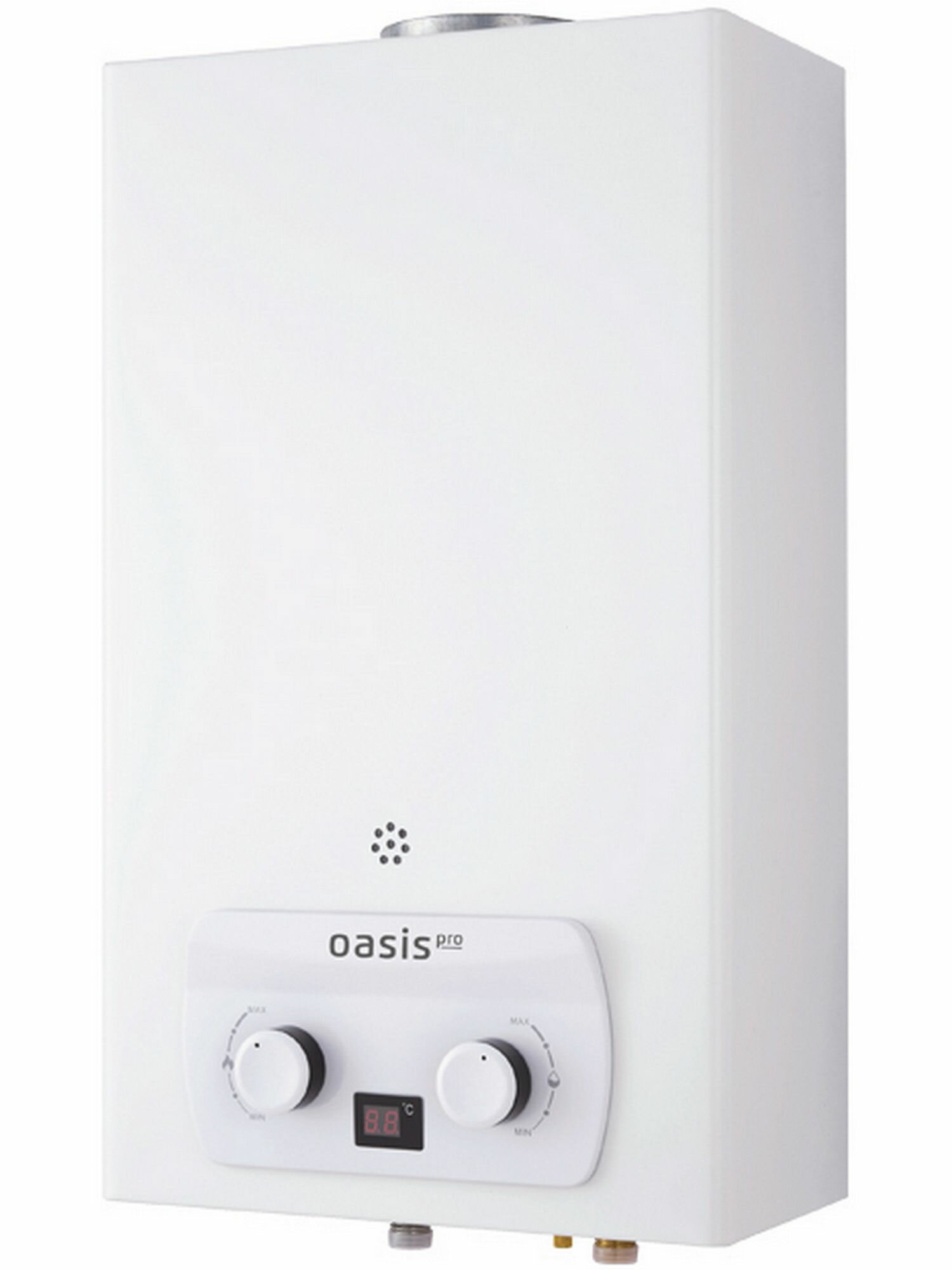 Газовый проточный водонагреватель Oasis Pro предназначен для мгновенного нагрева воды. Он разработан для использования в квартирах, загородных домах и дачах с учетом специфики и снабжения газом и водой в России, что, в свою очередь позволяет колонке стабильно работать, даже при низком давлении воды в 0,02 МПа. Принцип его работы достаточно прост: вода проходит через теплообменник прибора и моментально нагревается от сгорающего газа, поступая к потребителю уже горячей.