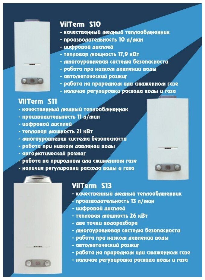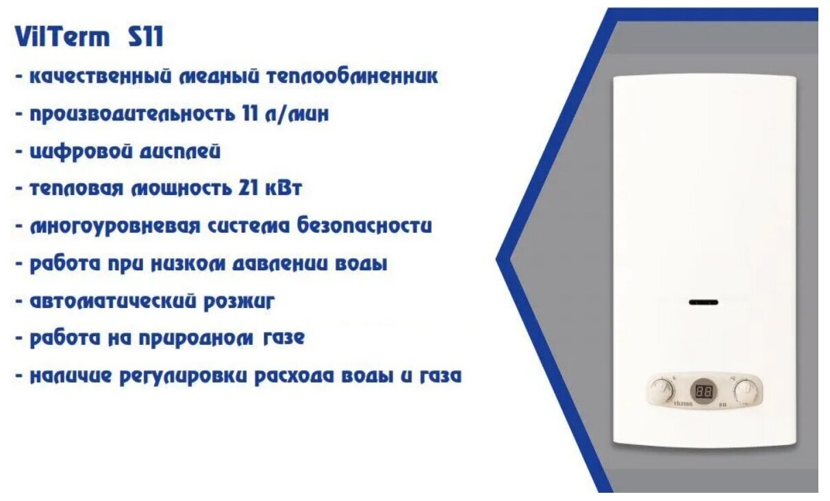 Купить Газовая колонка VilTerm S11 Сжиженный газ с доставкой по всей России. Газовая колонка VilTerm S11 Сжиженный газ: сравнение цен, характеристики, фото, актуальное наличие и цены.