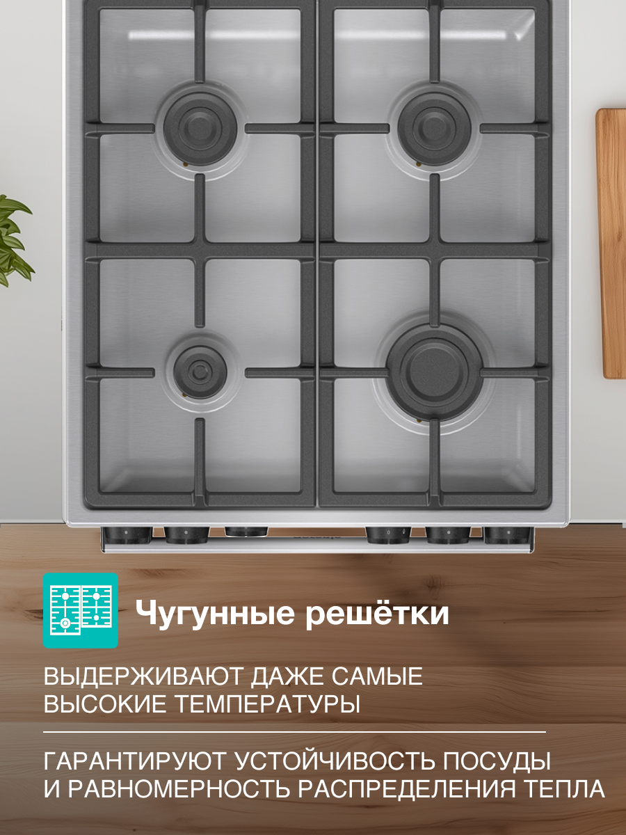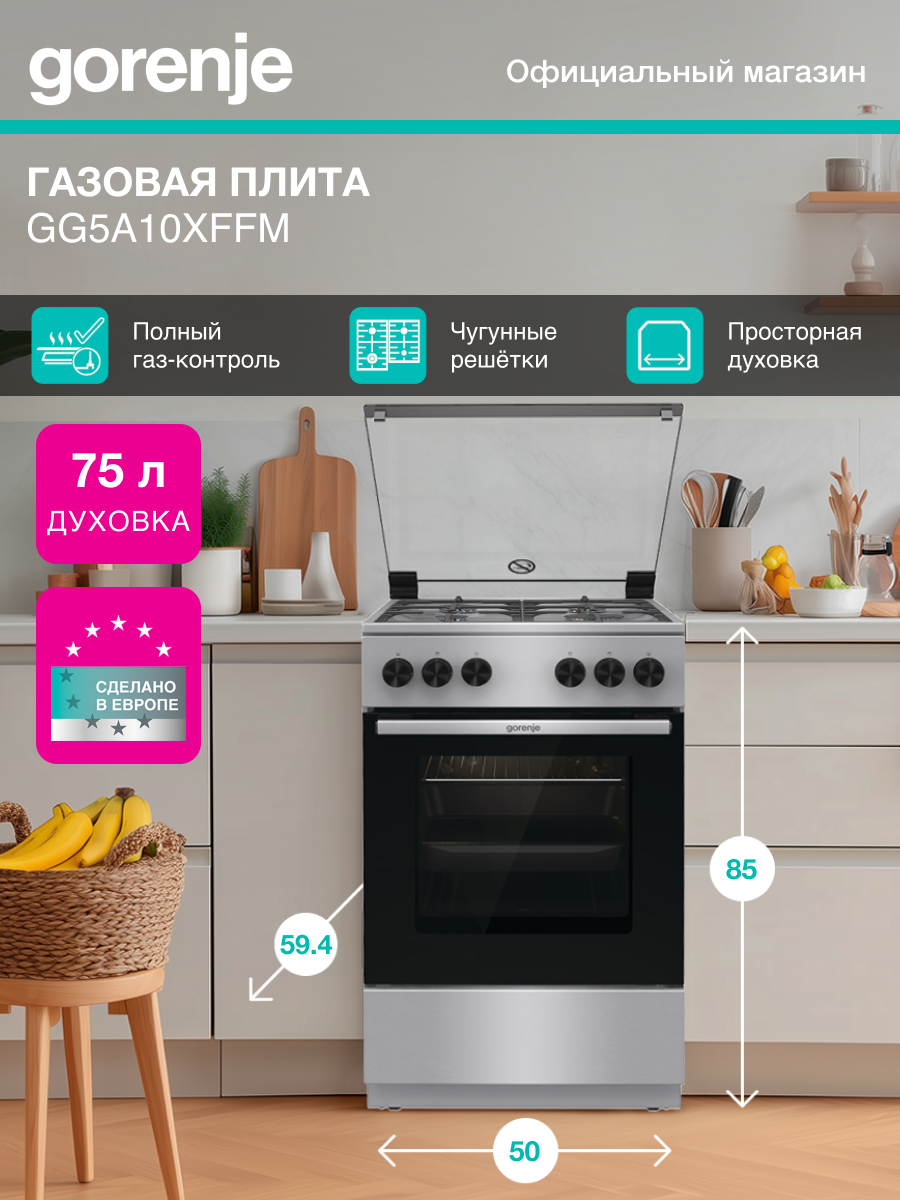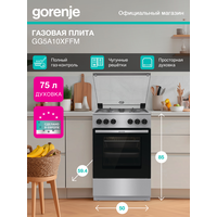 Газовая плита Gorenje GG5A10XFFM, класс: A, 75 л, отдельностоящая, Чугунные решетки, Нержавеющая сталь