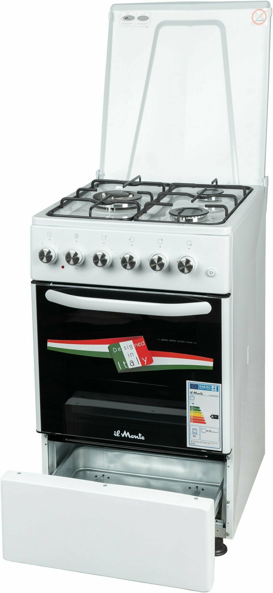 Купить Газовая плита, 50 см, Электрическая духовка 52 л Автоотключение по таймеру 3 режима, Электроподжиг Термостат 70 — 250 С, Турбо Конфорка-WOK il Monte FO-GE5050 с доставкой по всей России.