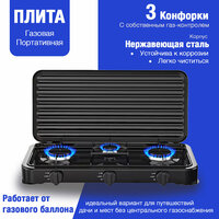 Купить Газовая плита портативная настольная, 3 конфорки, для дома дачи и походов с доставкой по всей России.