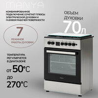 Купить Газовая плита с электрической духовкой 60 см комбинированная MANYA MC6032S каталитическая очистка, чугунные решетки с доставкой по всей России.