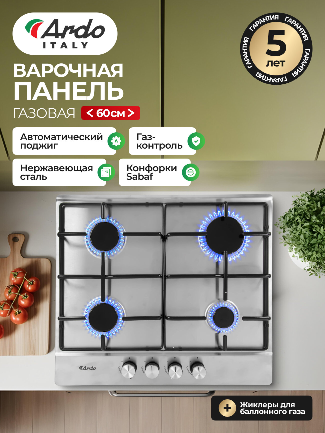 Варочная панель Ardo — это современное решение для вашей кухни, которое сочетает в себе функциональность и стиль. Изготовленная из качественного инокса, эта панель не только легко чистится, но и обладает высокой стойкостью к коррозии и механическим повреждениям. Удобные боковые ручки управления позволяют с легкостью регулировать пламя, обеспечивая точный контроль во время приготовления пищи.