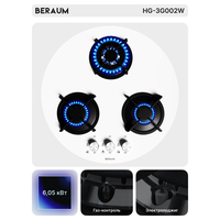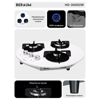 Газовая варочная панель круглая Beraum HG-3G002W, 3 конфорки, газ-контроль, белый: сравнение цен, характеристики, фото, актуальное наличие и цены.