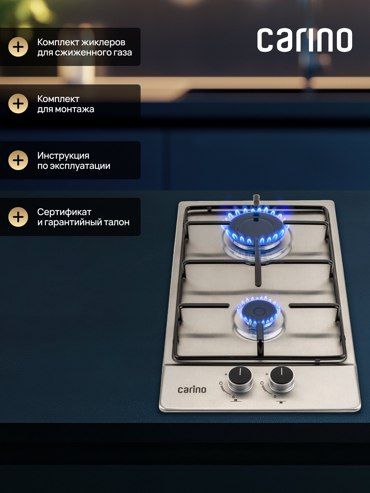 Купить Газовая варочная панель CARINO CH30V20M416 30 см, нержавеющая сталь, автоматический розжиг с доставкой по всей России.