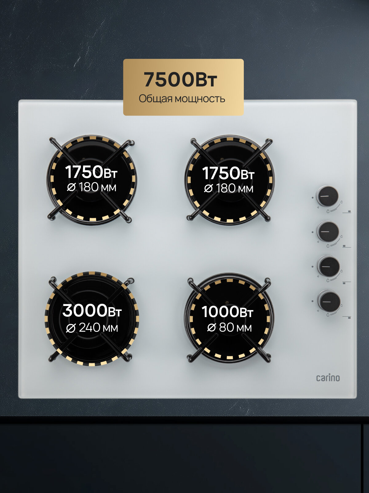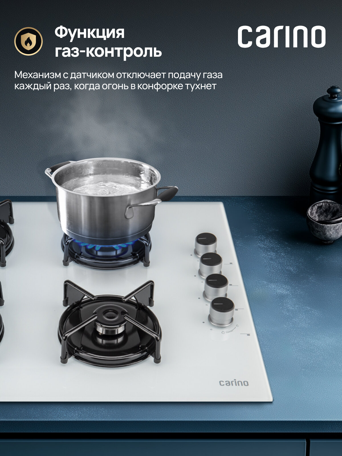Газовая варочная панель CARINO CH60K40C111 60 см, газ-контроль, закаленное стекло, автоматический розжиг: сравнение цен, характеристики, фото, актуальное наличие и цены.