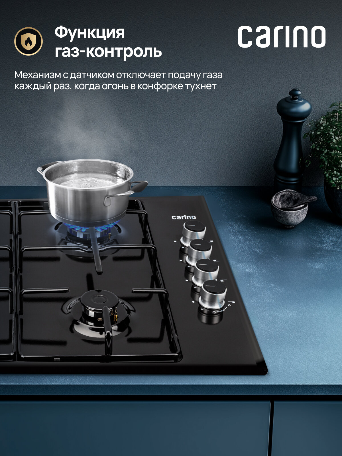 Купить Газовая варочная панель CARINO CH60Q40B401 60 см, автоматический розжиг, эмалированные решетки с доставкой по всей России.