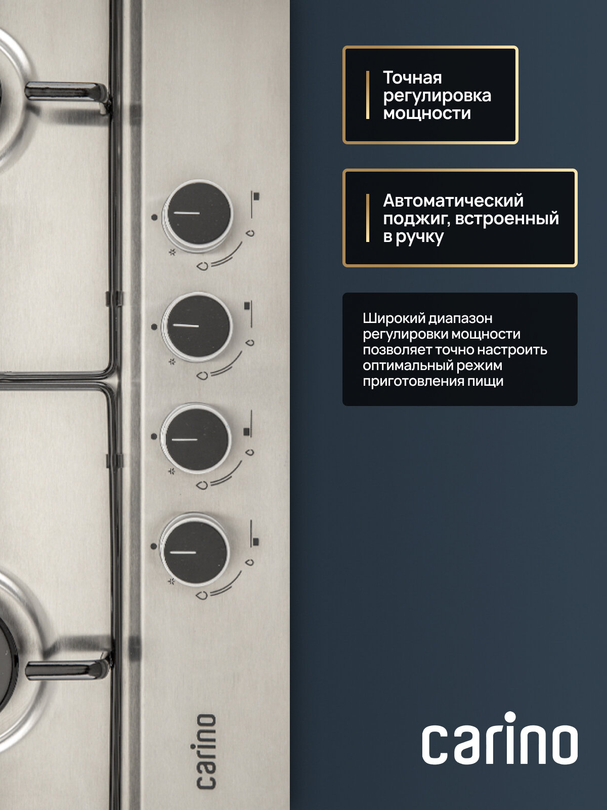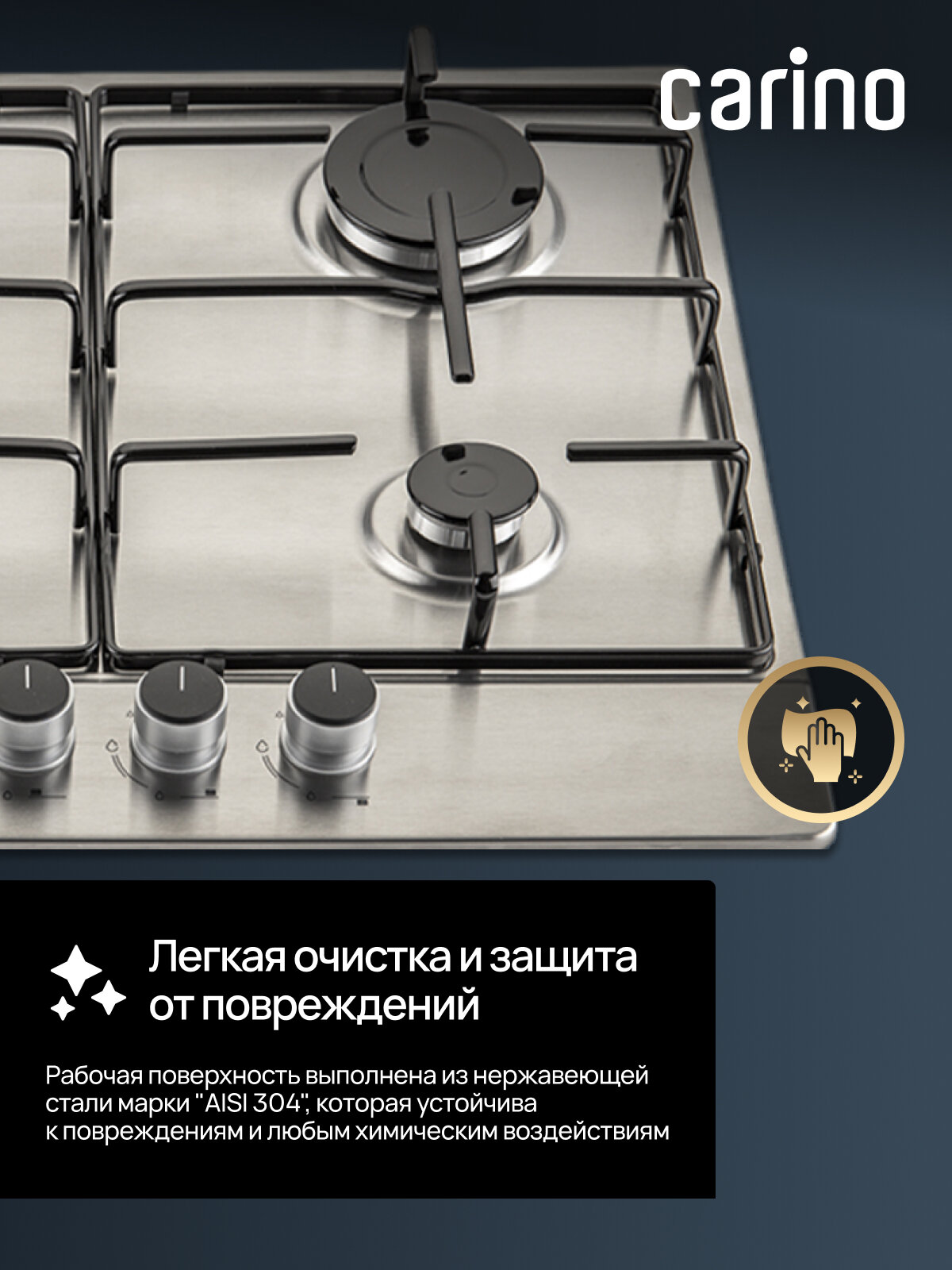 Купить Газовая варочная панель CARINO CH60V40M411 60 см, нержавеющая сталь, автоматический розжиг с доставкой по всей России.