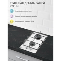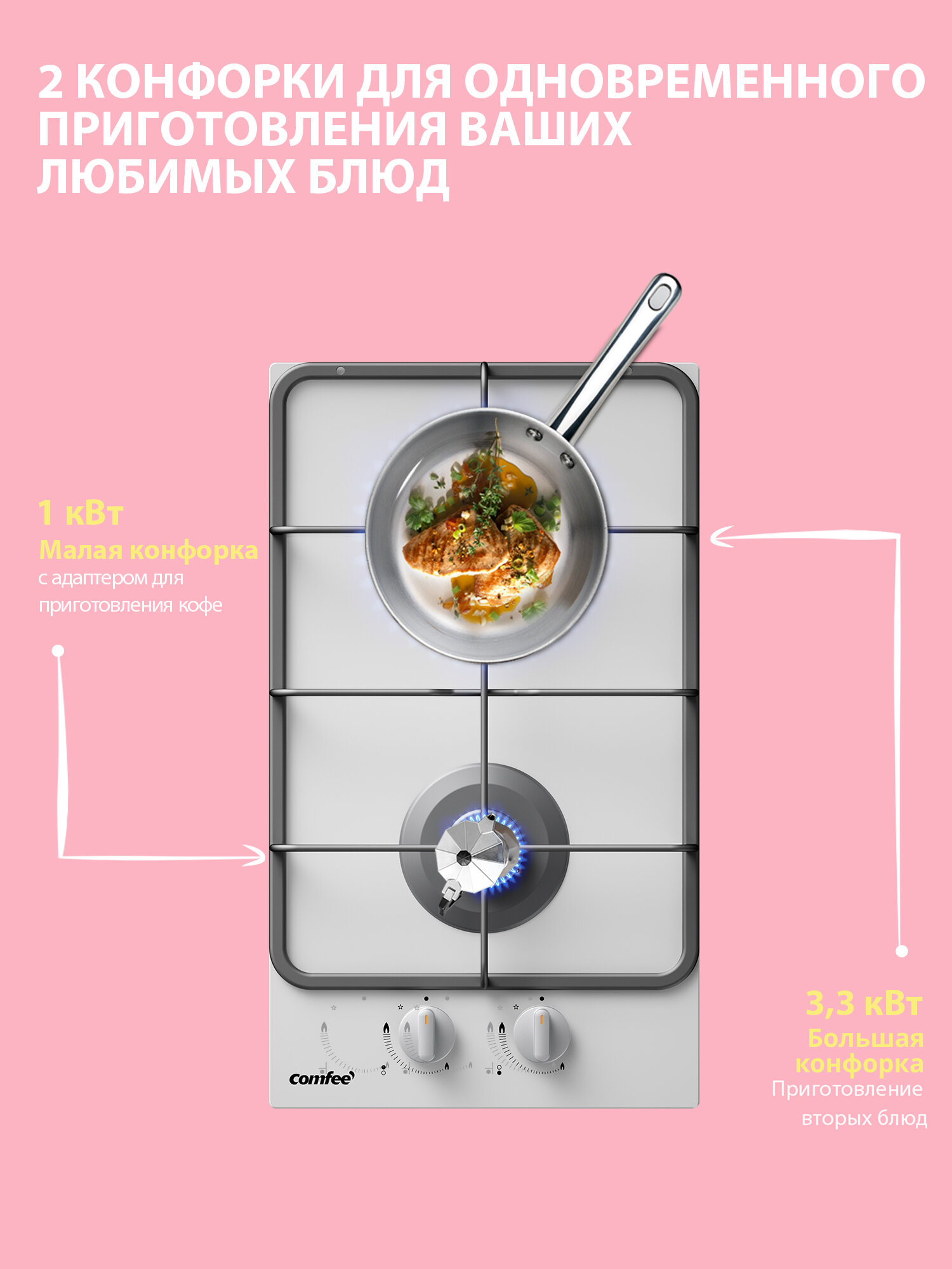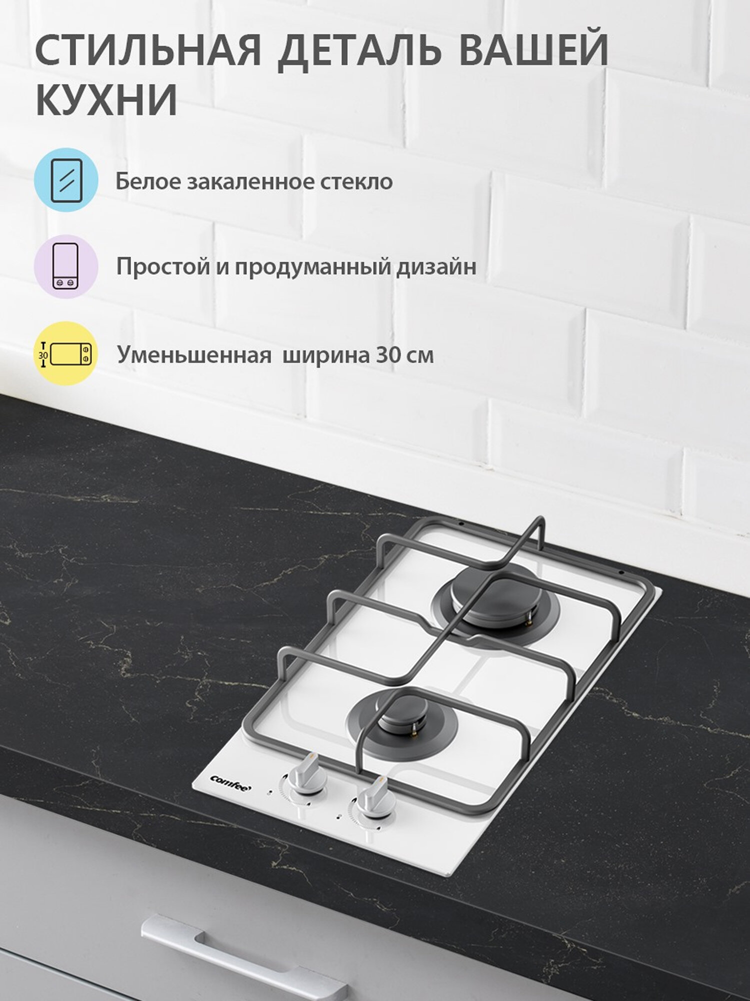 Газовая варочная панель Comfee CGH311GW, 2 конфорки домино, ширина 30 см, закаленное стекло, электроподжиг, газ-контроль, белый: сравнение цен, характеристики, фото, актуальное наличие и цены.