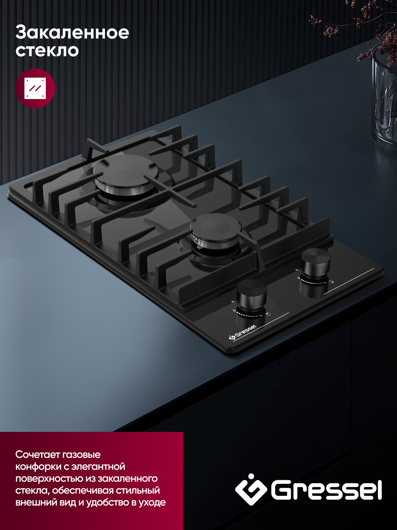 Газовая варочная панель Gressel U30H20S088, стеклянная поверхность, чугунные решётки, 30 см, автоподжиг: сравнение цен, характеристики, фото, актуальное наличие и цены.