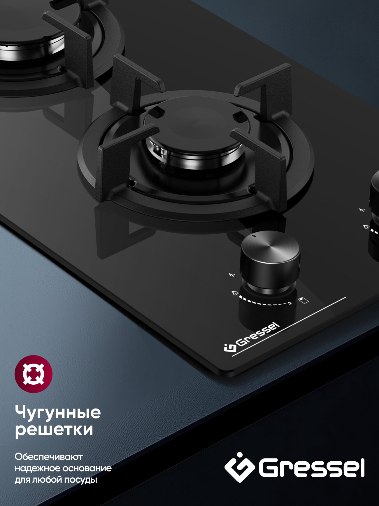 Газовая варочная панель Gressel U30N20S088, 2 конфорки, закалённое стекло, чугун, 30 см, автоподжиг: сравнение цен, характеристики, фото, актуальное наличие и цены.