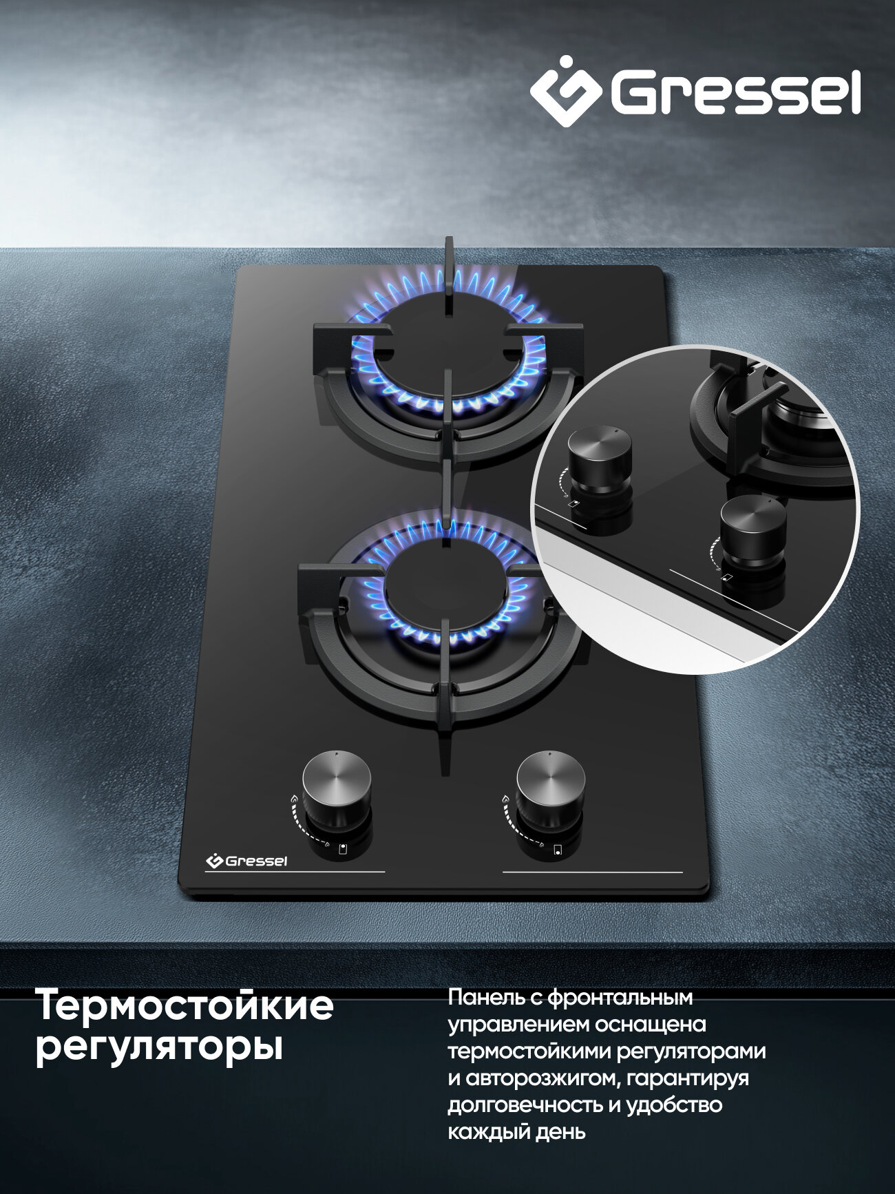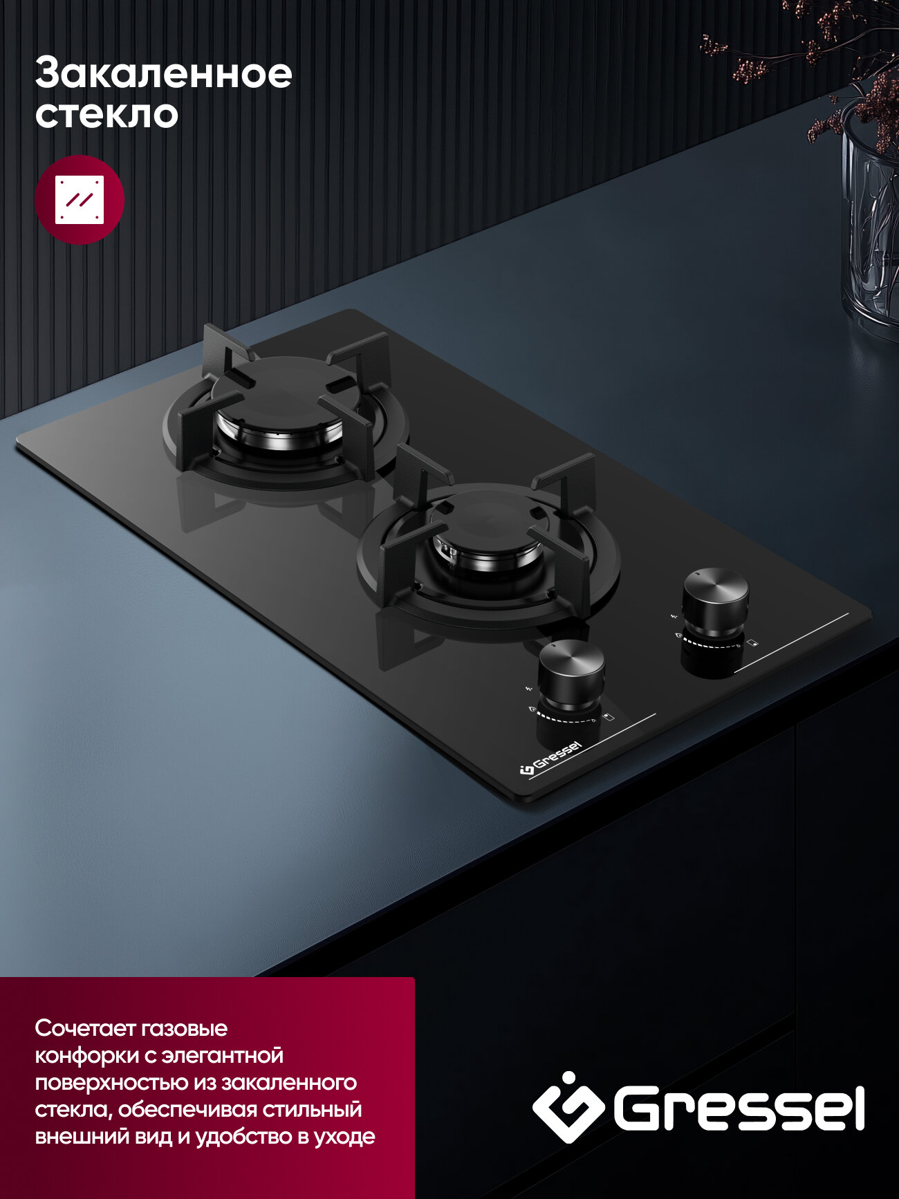 Купить Газовая варочная панель Gressel U30N20S088, 2 конфорки, закалённое стекло, чугун, 30 см, автоподжиг с доставкой по всей России.
