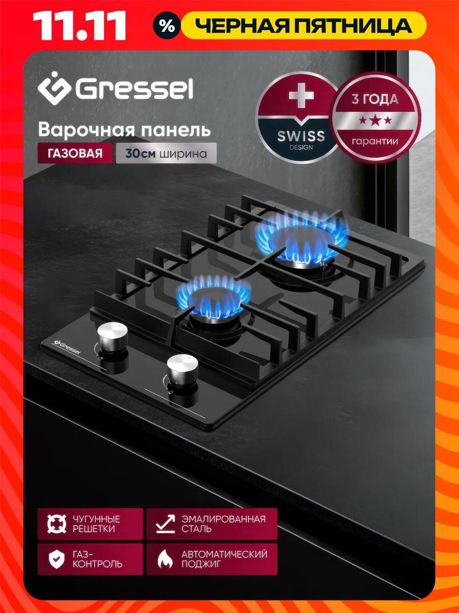 Газовая варочная панель Gressel U30V20B001 30 см, эмалированная сталь, электроподжиг, газ-контроль: сравнение цен, характеристики, фото, актуальное наличие и цены.