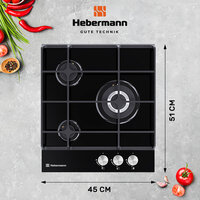 Купить Варочная панель газовая 3 конфорки Hebermann HBGG 453.1 B, материал поверхности: закалённое стекло, материал решёток: чугун, термостойкие ручки -Hitech, электроподжиг, газ-контроль с доставкой по всей России.