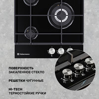 Варочная панель газовая 3 конфорки Hebermann HBGG 453.1 B, материал поверхности: закалённое стекло, материал решёток: чугун, термостойкие ручки -Hitech, электроподжиг, газ-контроль: сравнение цен, характеристики, фото, актуальное наличие и цены.