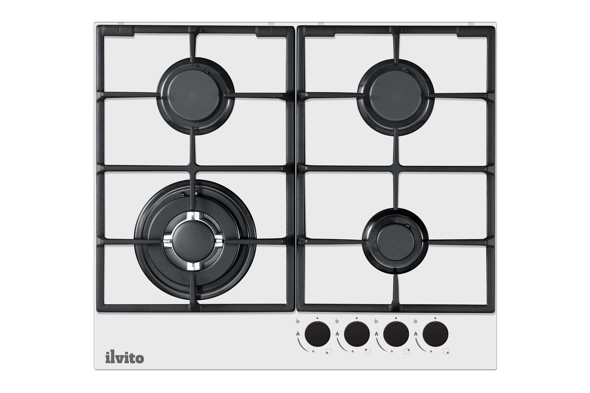 Купить Газовая варочная панель ILVITO IPG FERNANDA 6GW BB, WOK-конфорка, газ-контроль, 60 см, варочная панель газовая с доставкой по всей России.
