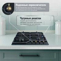 Купить Газовая варочная панель MBS PG-611BL ECO classic/ширина 60см, 4 конфорки, закалённое стекло чёрного цвета, электроподжиг, WOK-конфорка, чугунные решётки, всё для подключения газового баллона с доставкой по всей России.