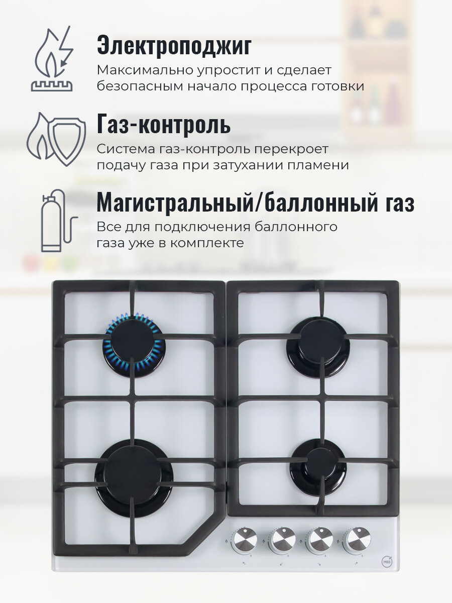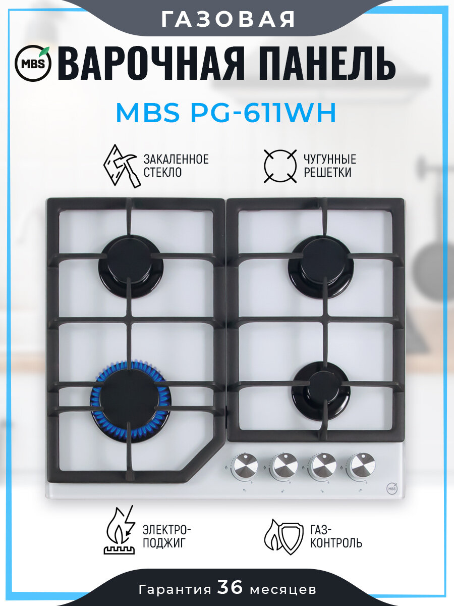 Купить Газовая варочная панель MBS PG-611WH с доставкой по всей России. Газовая варочная панель MBS PG-611WH: сравнение цен, характеристики, фото, актуальное наличие и цены.