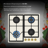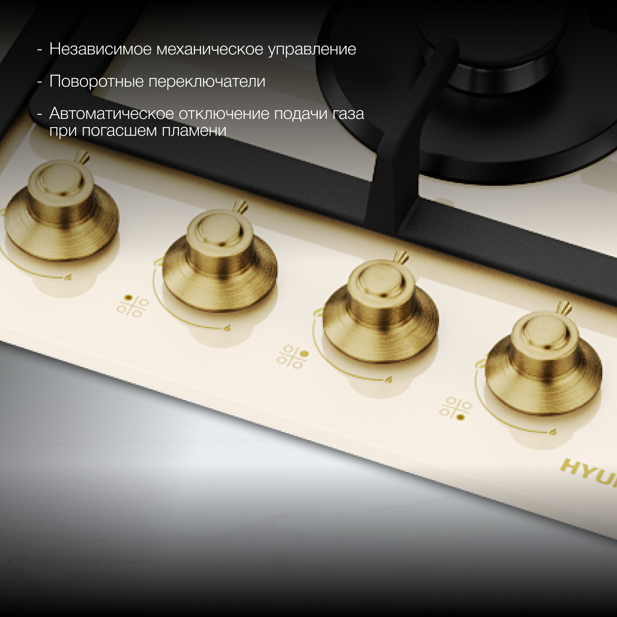 Купить Газовая варочная поверхность Hyundai HHG 6434 BE бежевый с доставкой по всей России.