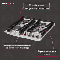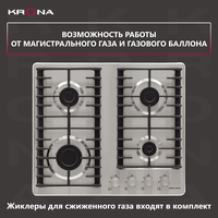 Купить Газовая варочная панель Krona HAGEL 60 IX 59 см, 4 конфорки электроподжиг газконтроль, серебристый с доставкой по всей России. Газовая варочная панель Krona HAGEL 60 IX 59 см, 4 конфорки электроподжиг газконтроль, серебристый: сравнение цен, характеристики, фото, актуальное наличие и цены.