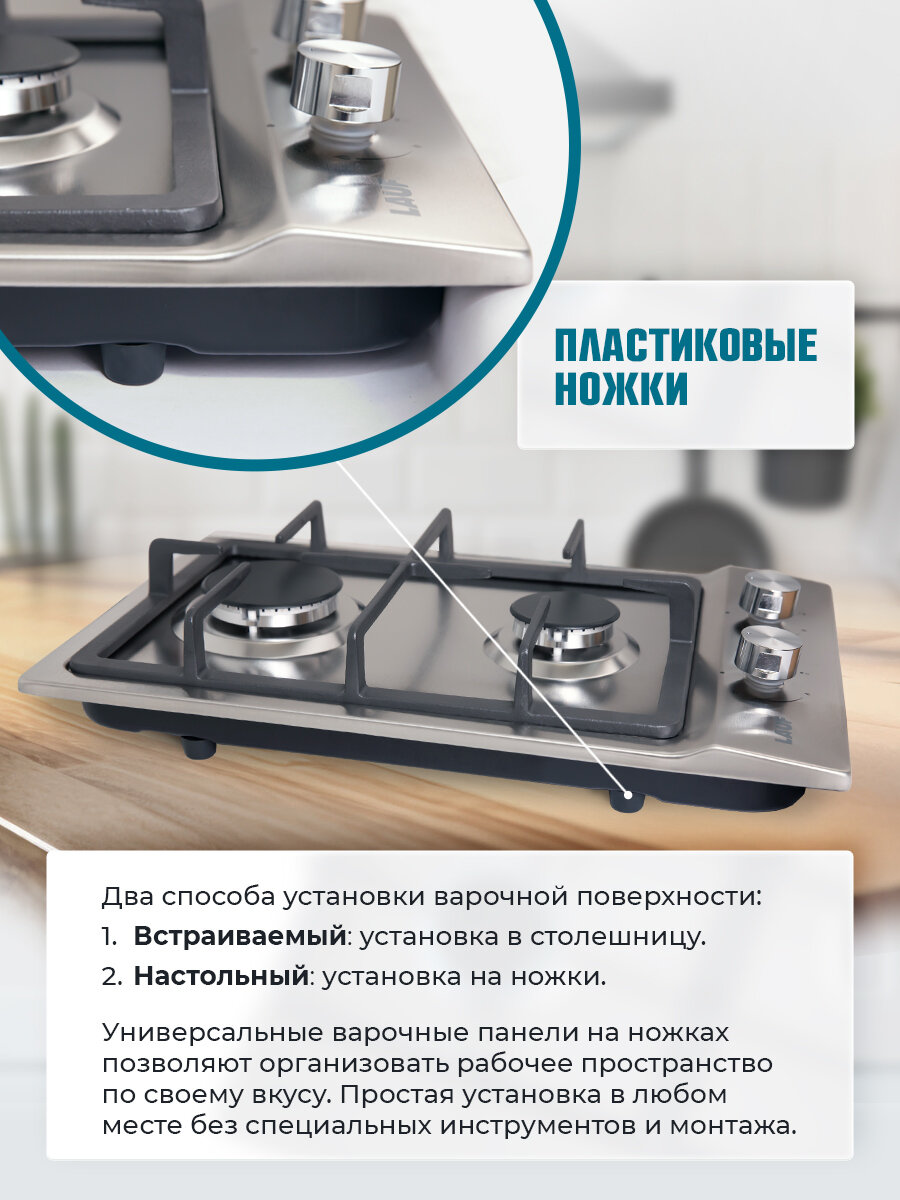 Купить Газовая варочная поверхность LAUF PG-305/электроподжиг/чугунные решётки/всё для подключения газового баллона с доставкой по всей России.