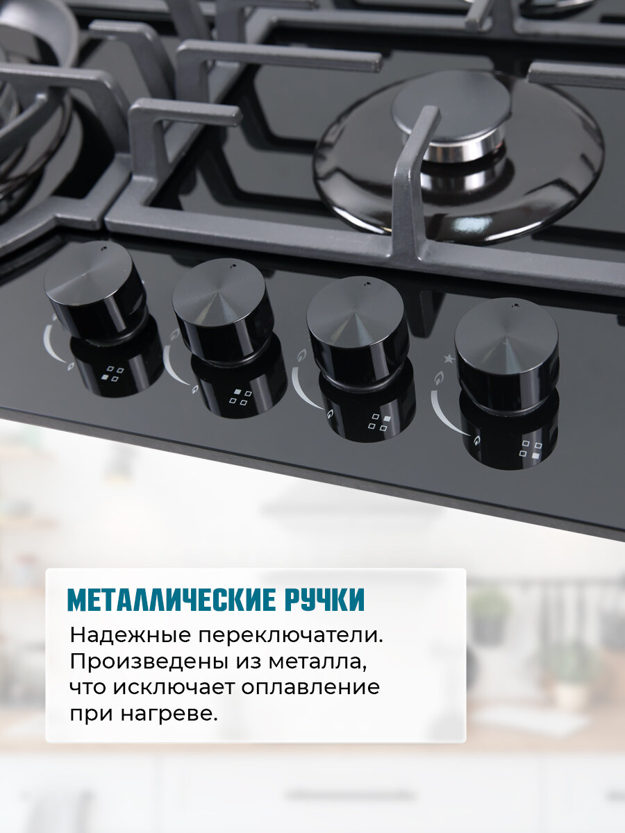 Купить Газовая варочная поверхность LAUF PG-619BL/газ-контроль/электроподжиг/WOK-конфорка/чугунные решётки/всё для подключения газового баллона с доставкой по всей России.