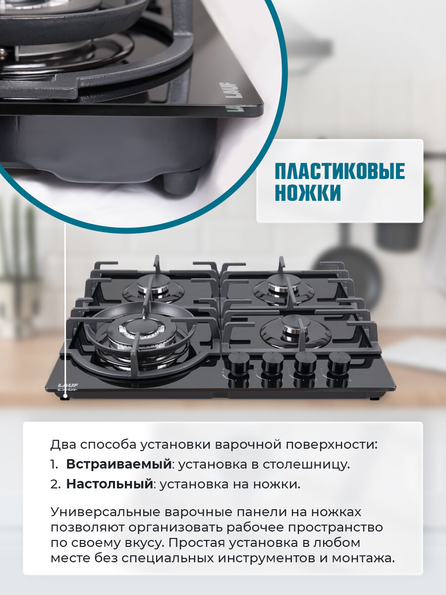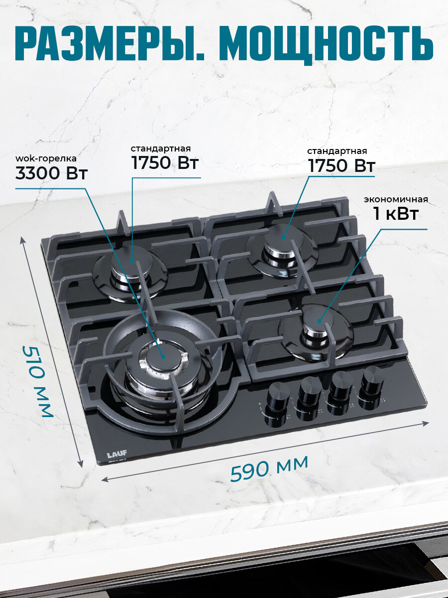 Газовая варочная поверхность LAUF PG-619BL/газ-контроль/электроподжиг/WOK-конфорка/чугунные решётки/всё для подключения газового баллона: сравнение цен, характеристики, фото, актуальное наличие и цены.