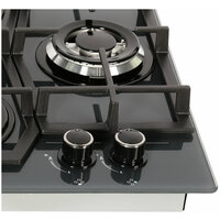 Варочная поверхность газовая. Цвет Графит. Габариты (ВхШхГ) 10х60х52.5. Стеклянная поверхность, размещение горелок "ромб", двухзонная горелка, электророзжиг, встроенный в ручки, система "газ-контроль", фиксированное положение "малое пламя". Чугунные решетки.