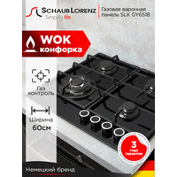 Купить Газовая встраиваемая варочная панель Schaub Lorenz SLK GY6518, 60см, чёрный, газконтроль, автоподжиг, WOK с доставкой по всей России.