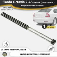 Только на лифтбек! Комплект для замены штатных на багажник Шкода Октавия 2 A5 (2004-2013г. в.), состоит из 2 газовых упора с усилием 430 ньютонов каждый. Подходит на модификации RS.