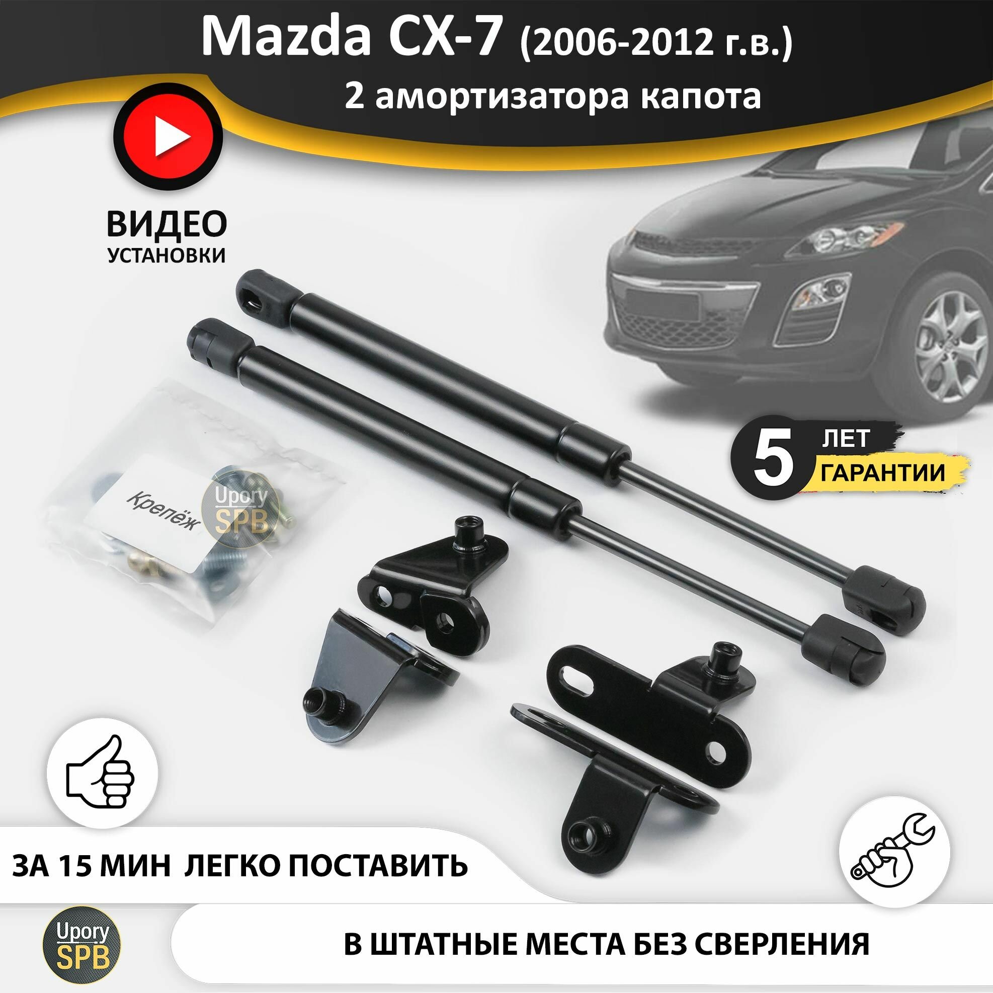 Купить Газовые упоры (амортизаторы) капота для Mazda CX-7 (2006-2012г. в.), стойки кузова 2 шт, газлифт крышки мазда сх7, сх-7, CX7 с доставкой по всей России.