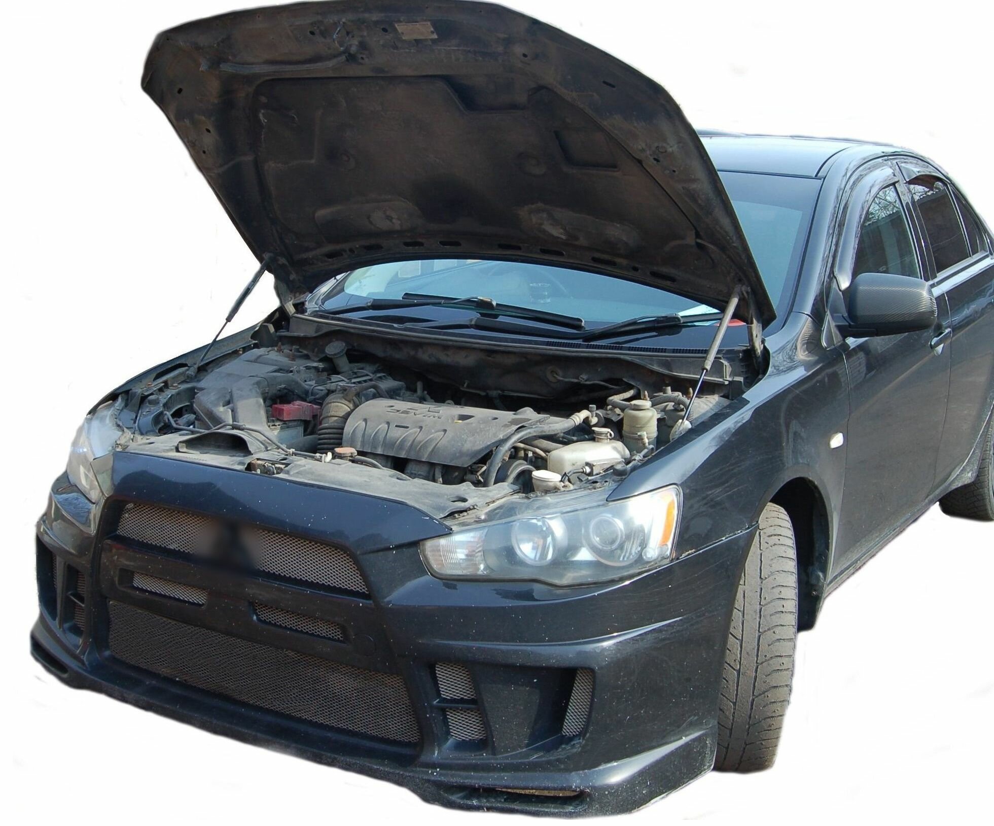 Газовые упоры (амортизаторы) капота для Mitsubishi Lancer 10 X (2007-2017г. в.), стойки кузова 2 шт, газлифт крышки митсубиши митсубиси лансер ланцер